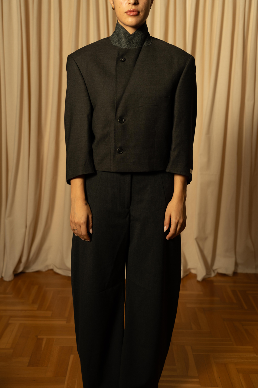 Esta prenda ha sido seleccionada cuidadosamente y reestructurada en nuestro pequeño taller de Pamplona por Legar y Mari Jose, dándole una segunda vida. Se puede llevar cerrada completamente con las solapas hacia dentro o con las solapas abiertas. Tu decides :)