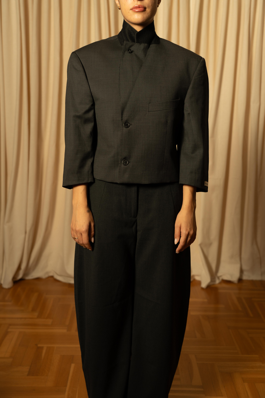 Esta prenda ha sido seleccionada cuidadosamente y reestructurada en nuestro pequeño taller de Pamplona por Legar y Mari Jose, dándole una segunda vida. Se puede llevar cerrada completamente con las solapas hacia dentro o con las solapas abiertas. Tu decides :)