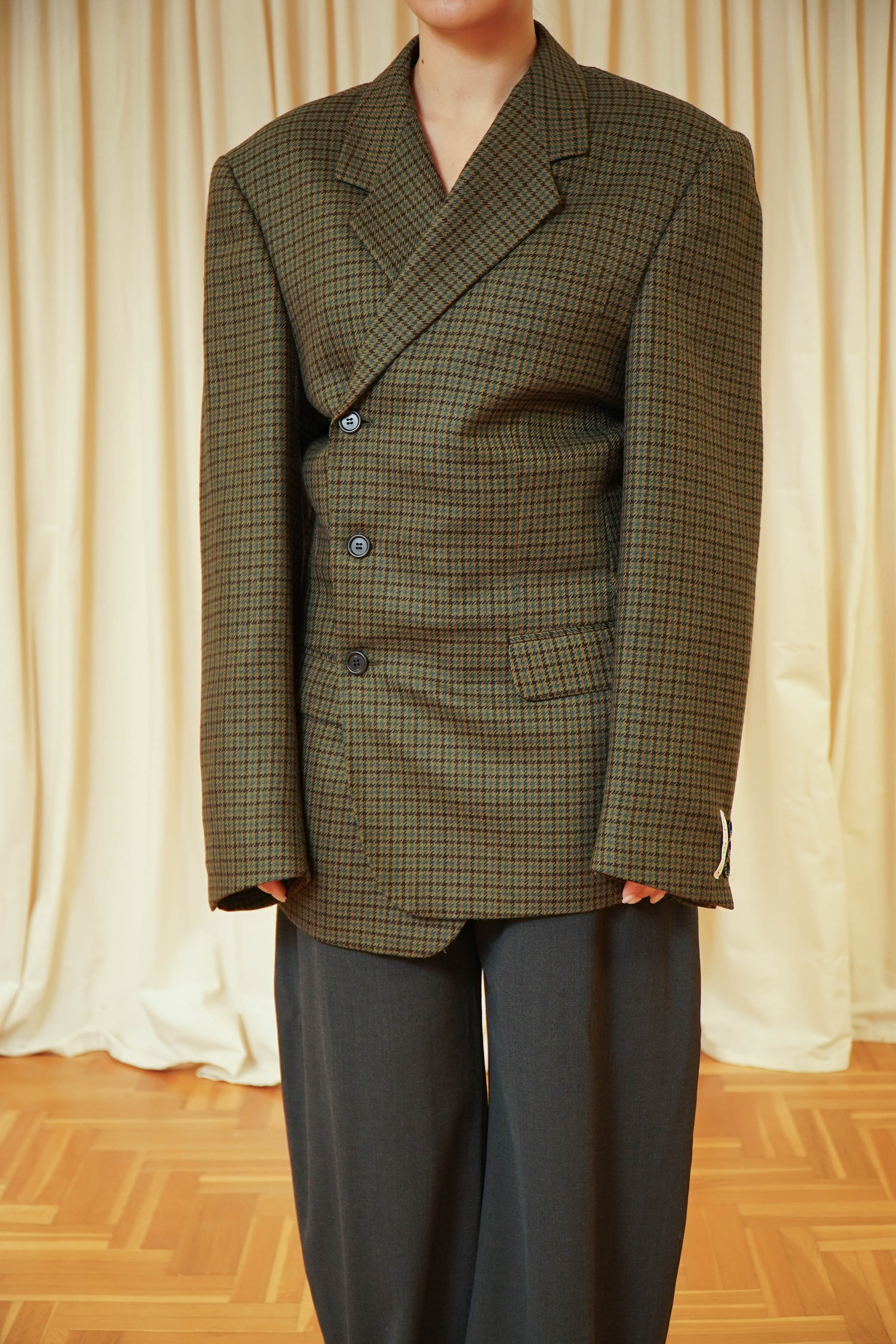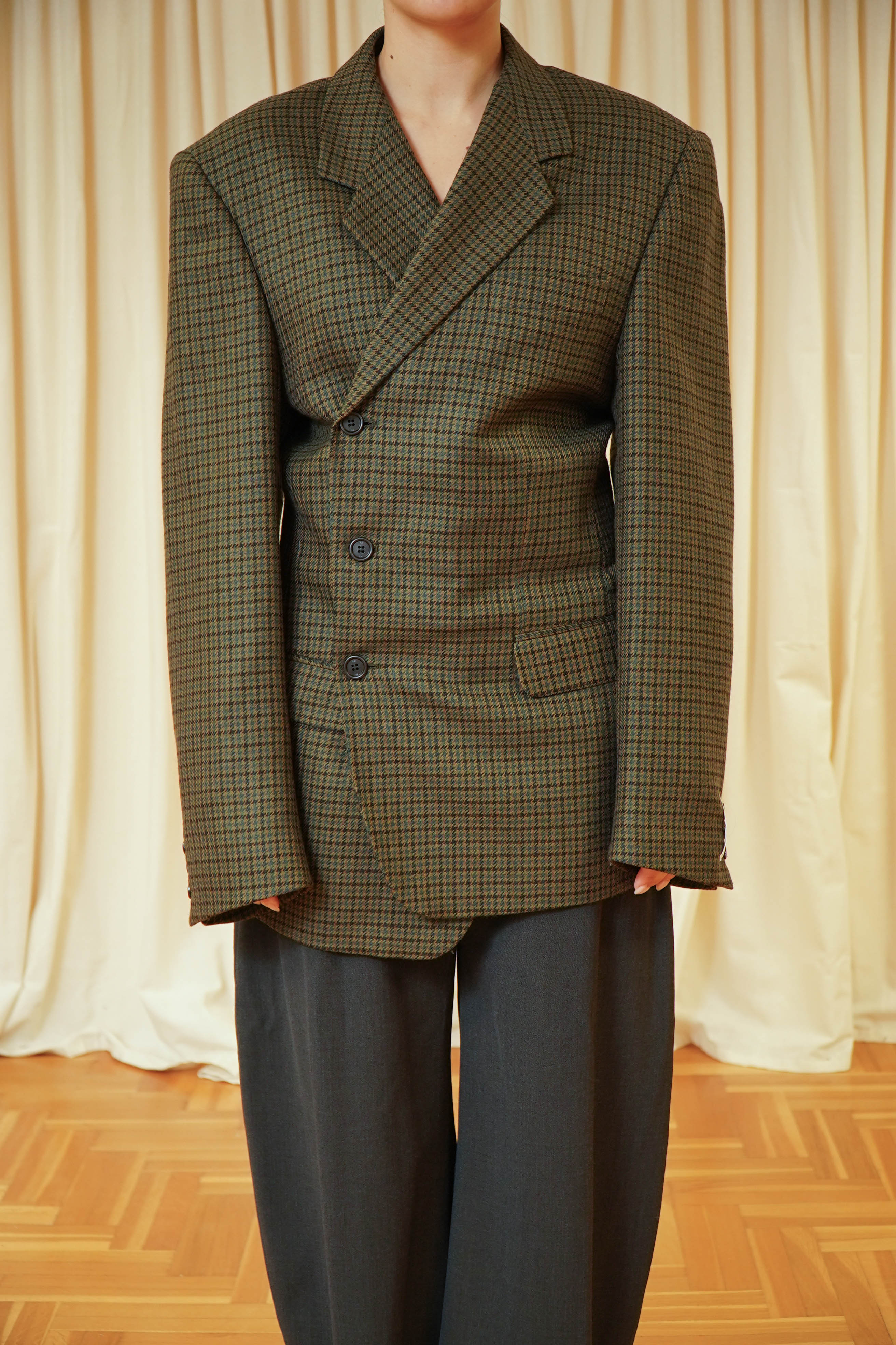 Esta prenda ha sido seleccionada cuidadosamente y reestructurada en nuestro pequeño taller de Pamplona por Legar y Mari Jose, dándole una segunda vida. Se puede llevar cerrada completamente con las solapas hacia dentro o con las solapas abiertas. Tu decides :)
