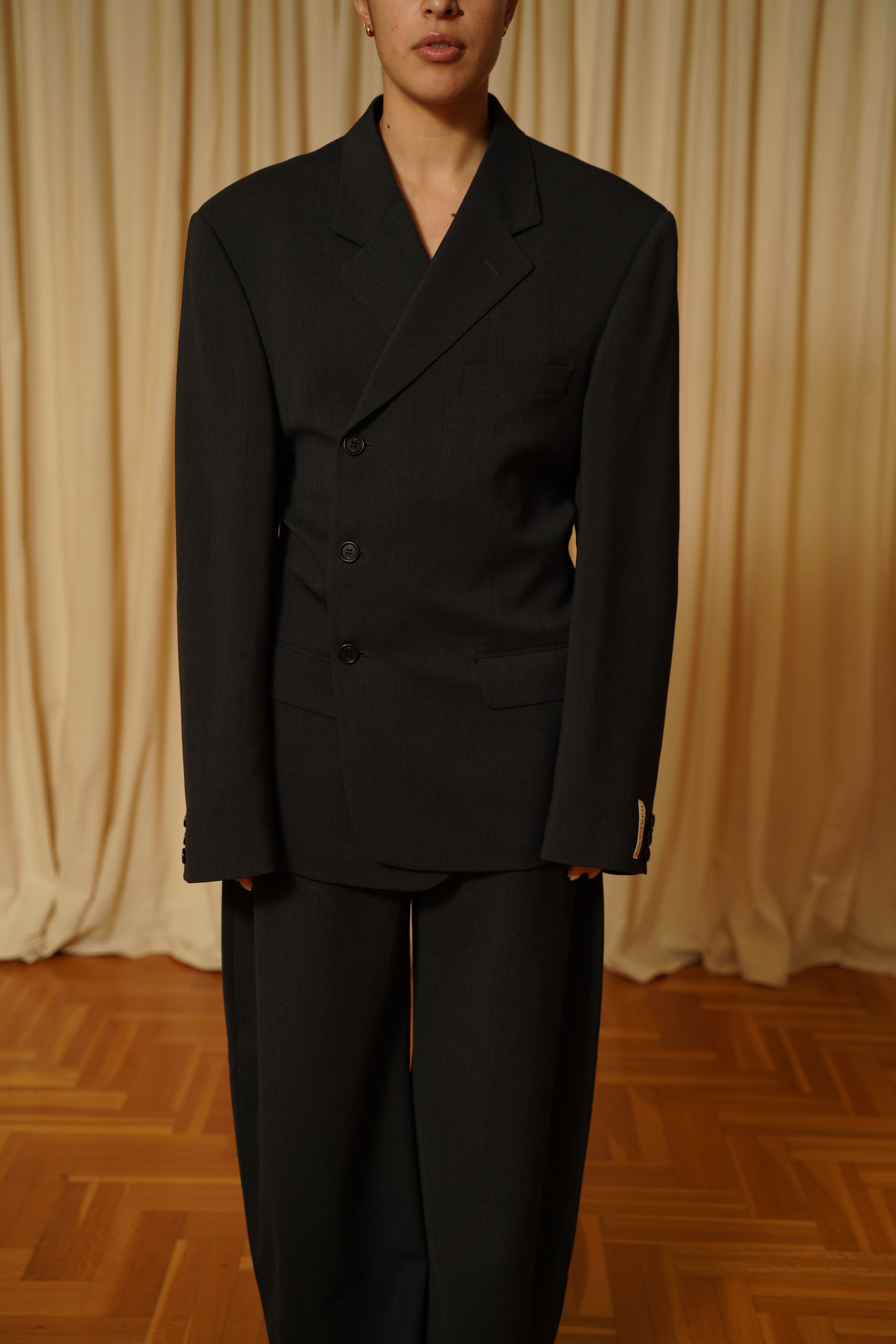 Esta prenda ha sido seleccionada cuidadosamente y reestructurada en nuestro pequeño taller de Pamplona por Legar y Mari Jose, dándole una segunda vida. Se puede llevar cerrada completamente con las solapas hacia dentro o con las solapas abiertas. Tu decides :)