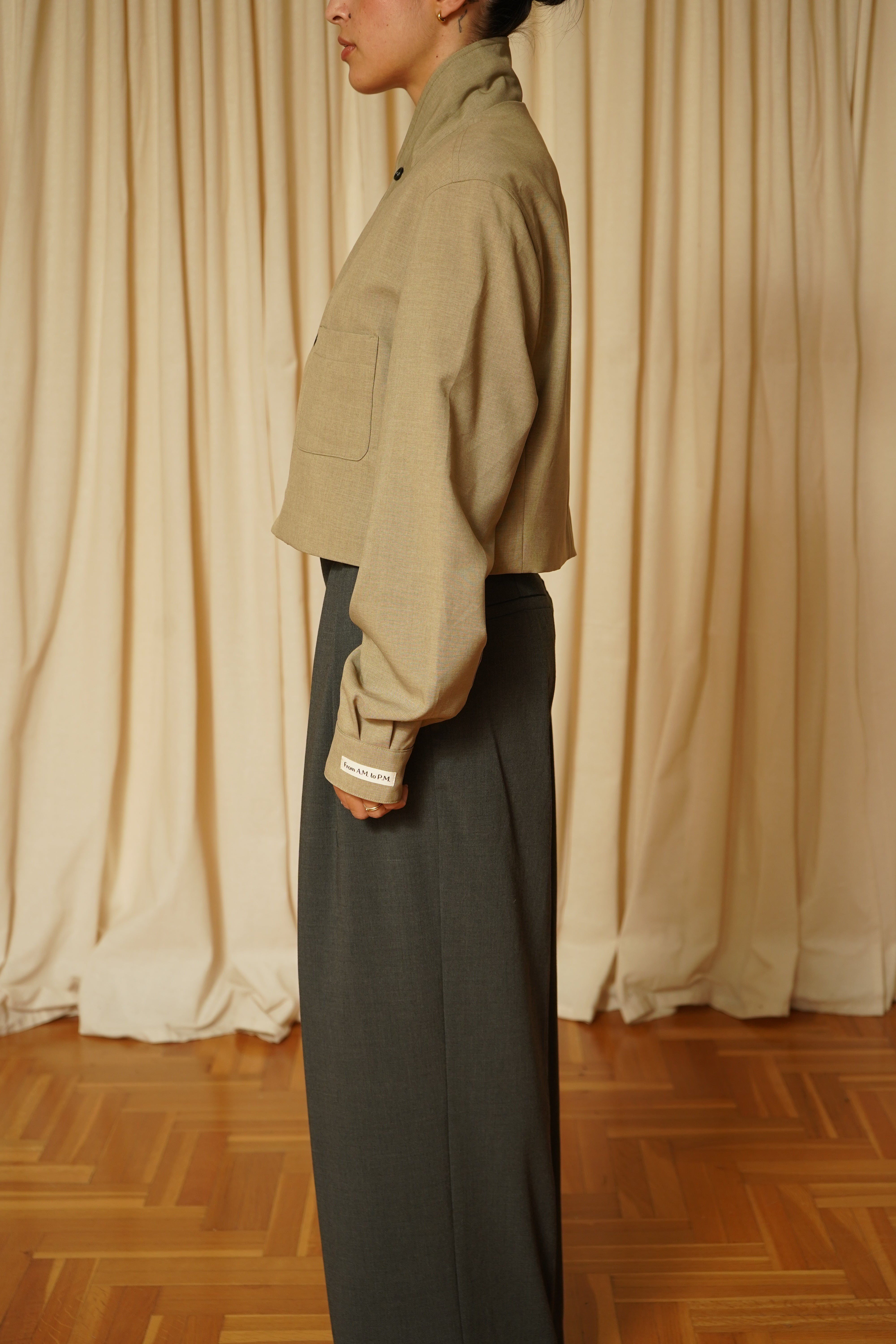 Esta prenda ha sido seleccionada cuidadosamente y reestructurada en nuestro pequeño taller de Pamplona por Legar y Mari Jose, dándole una segunda vida. Se puede llevar cerrada completamente con las solapas hacia dentro o con las solapas abiertas. Tu decides :)