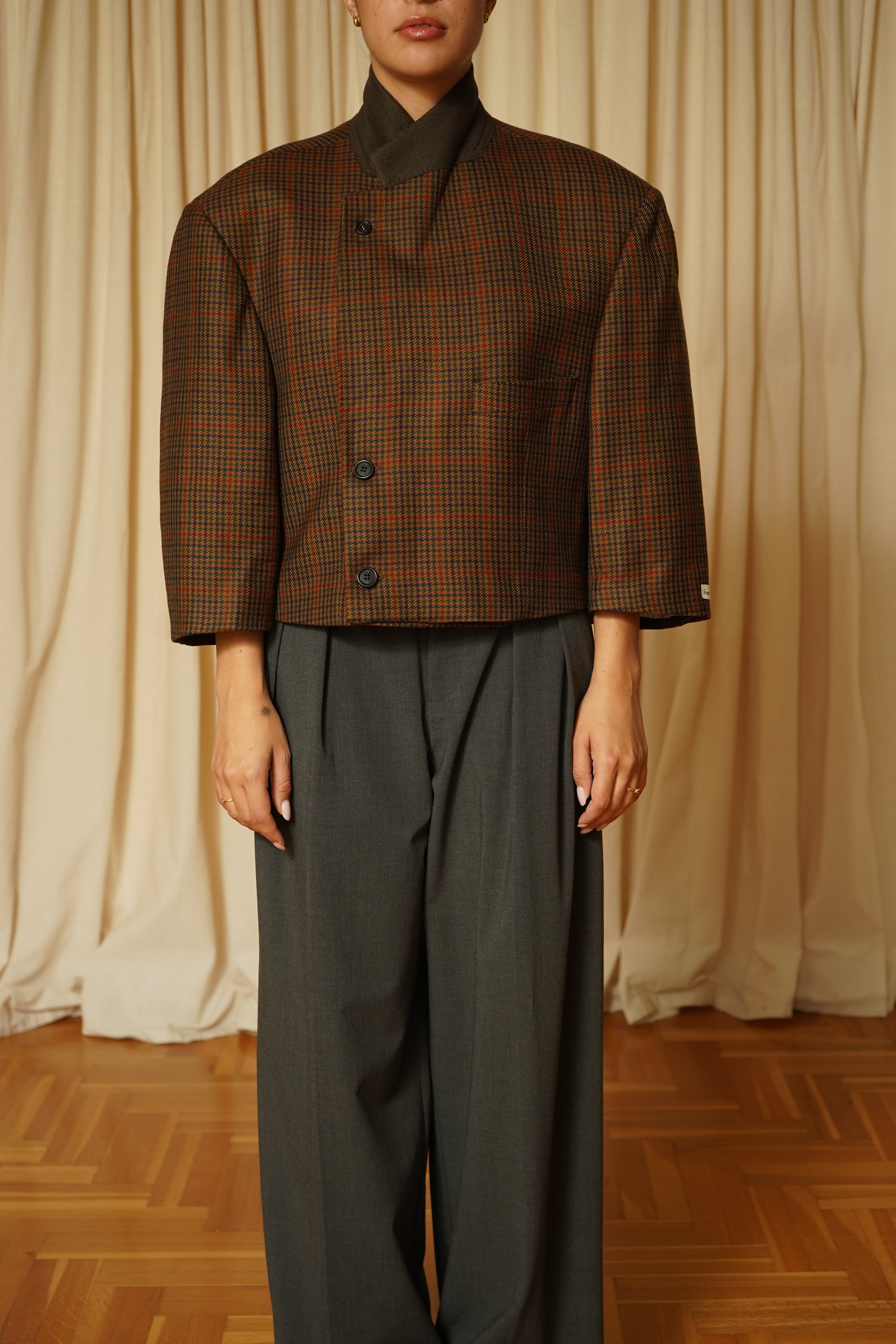 Esta prenda ha sido seleccionada cuidadosamente y reestructurada en nuestro pequeño taller de Pamplona por Legar y Mari Jose, dándole una segunda vida. Se puede llevar cerrada completamente con las solapas hacia dentro o con las solapas abiertas. Tu decides :)