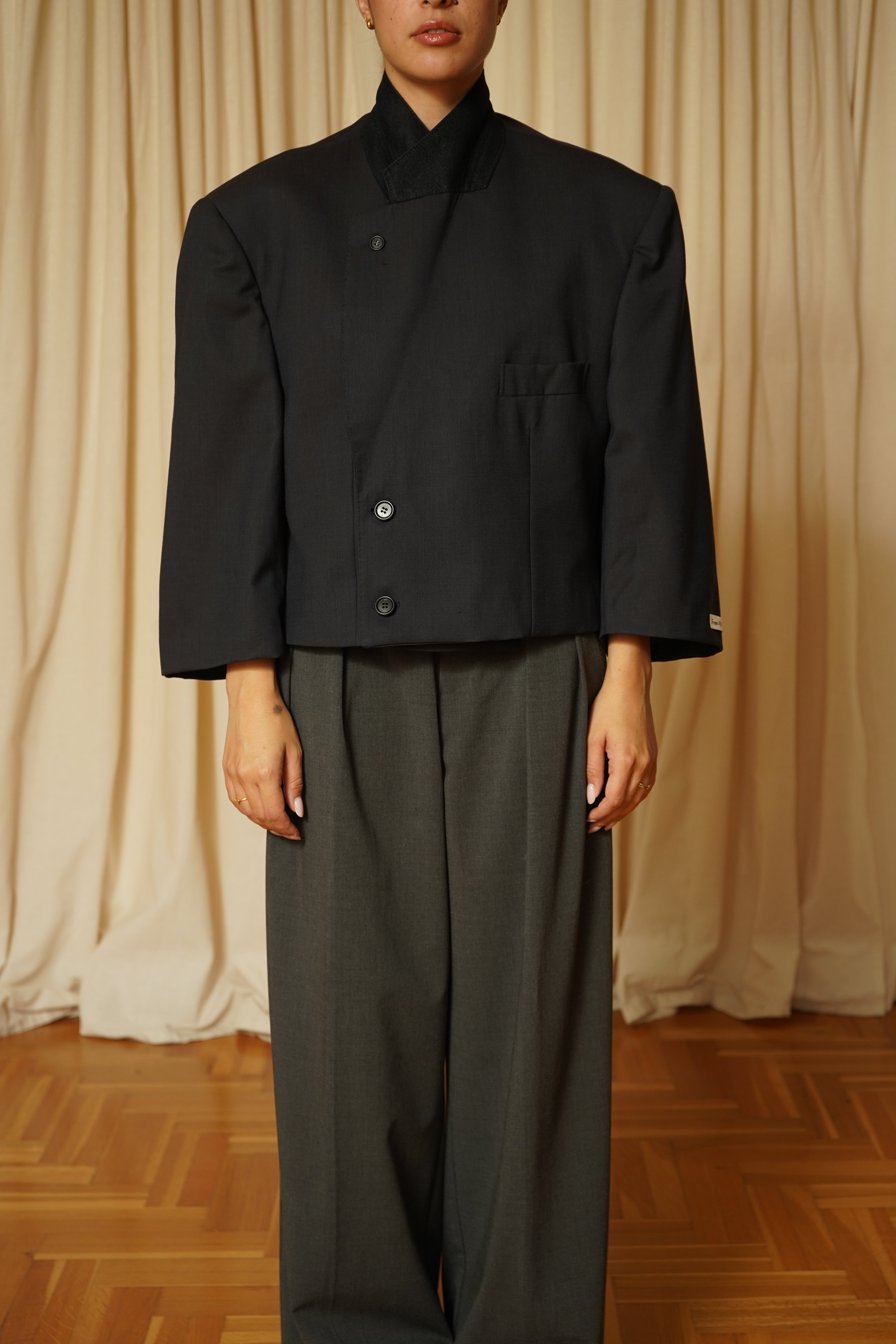 Esta prenda ha sido seleccionada cuidadosamente y reestructurada en nuestro pequeño taller de Pamplona por Legar y Mari Jose, dándole una segunda vida. Se puede llevar cerrada completamente con las solapas hacia dentro o con las solapas abiertas. Tu decides :)