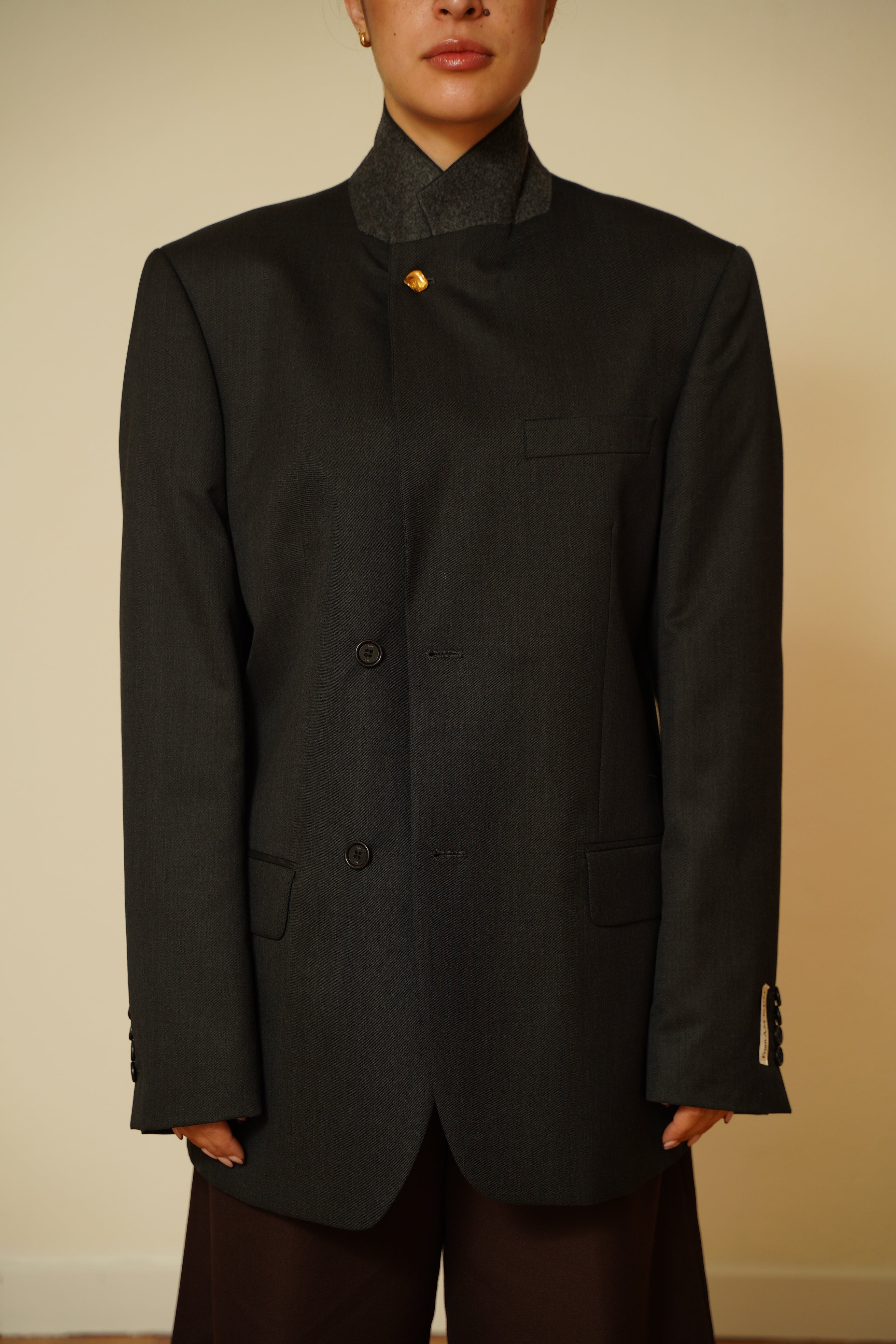 Esta prenda ha sido seleccionada cuidadosamente y reestructurada en nuestro pequeño taller de Pamplona por Legar y Mari Jose, dándole una segunda vida. Se puede llevar cerrada completamente con las solapas hacia dentro o con las solapas abiertas. Tu decides :)