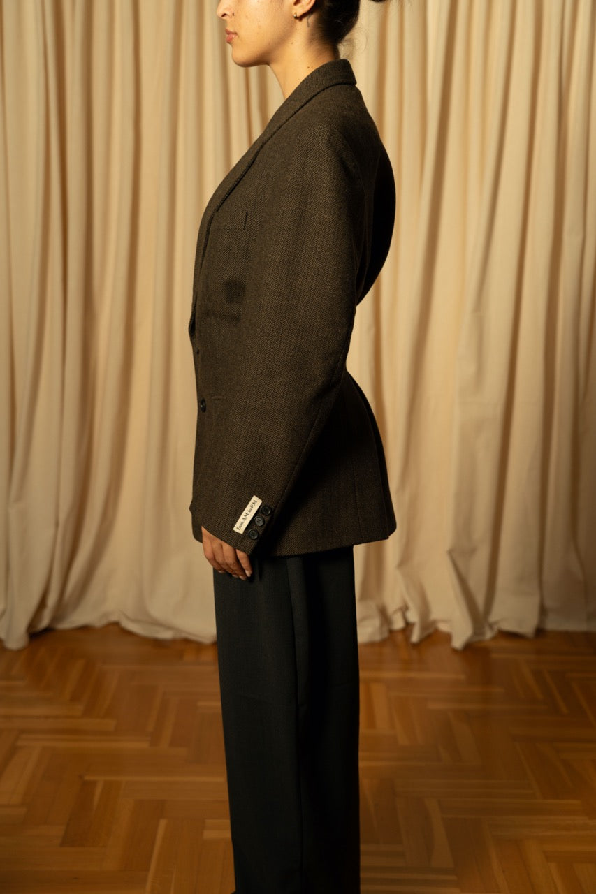Esta prenda ha sido seleccionada cuidadosamente y reestructurada en nuestro pequeño taller de Pamplona por Legar y Mari Jose, dándole una segunda vida. Se puede llevar cerrada completamente con las solapas hacia dentro o con las solapas abiertas. Tu decides :)