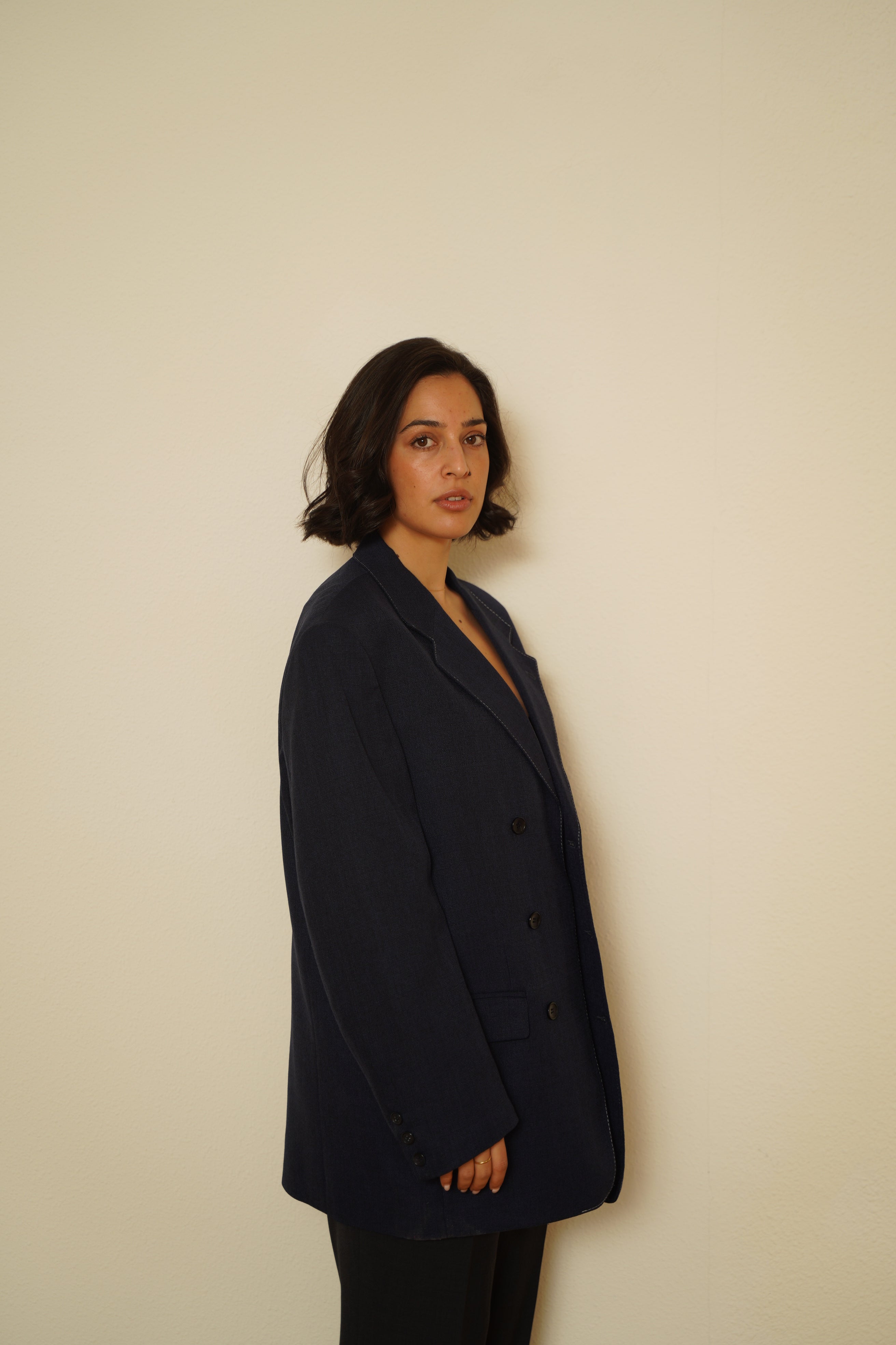 Esta prenda ha sido seleccionada cuidadosamente y reestructurada en nuestro pequeño taller de Pamplona por Legar y Mari Jose, dándole una segunda vida. Se puede llevar cerrada completamente con las solapas hacia dentro o con las solapas abiertas. Tu decides :)